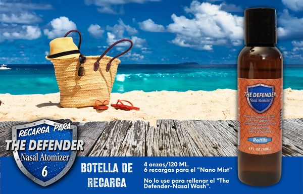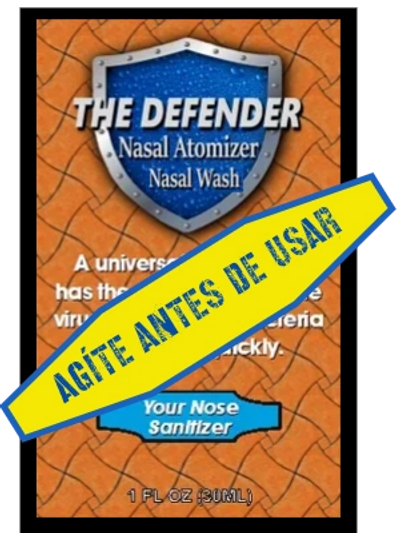 PRECAUCIÓN: Mantenga el spray "The Defender-Nasal Wash" fuera del alcance de los niños. El uso de este dispensador de spray humectante nasal por más de una persona puede propagar la infección.